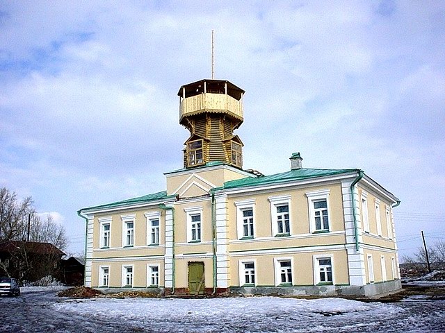 Музей истории города Томска ( 1890-годы - полицейская часть с пожарной каланчей. Каланча была разобрана в 1970 году, сейчас производится ее реставрация) это южный мыс Воскресенской горы, где сложился первый центр г.Томска).Справа от здания стоит камень основанию города Томска.